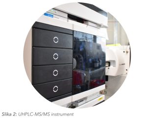Nakon pripreme uzorka, provodi se analitičko određivanje pomoću UHPLC-MS/MS.